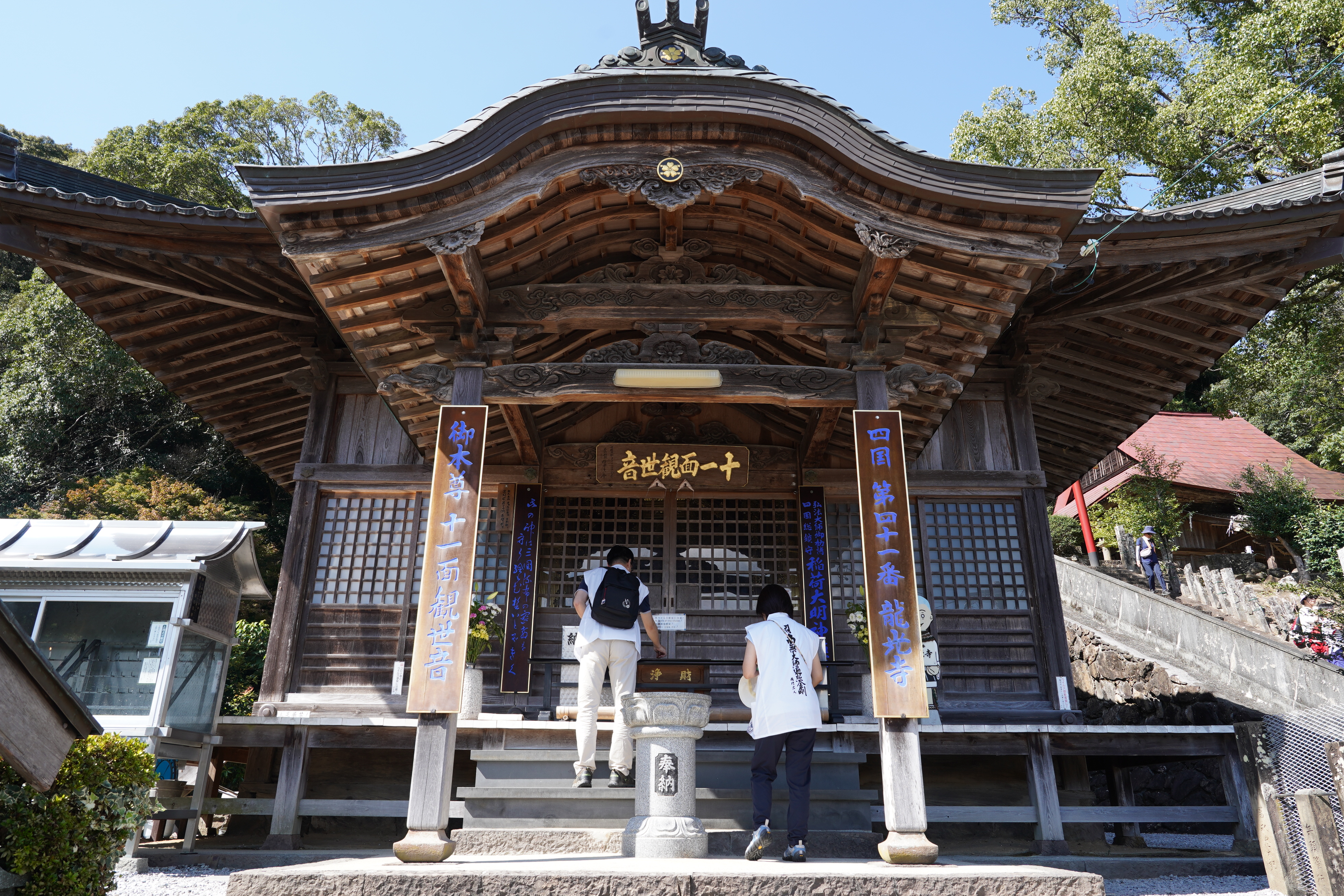 第45番岩屋寺,是位於九万高原中的一座山岳靈場,四國八十八所靈場中唯一車輛無法接近的寺院聞名,寺院內的大師堂被指定為日本國家重要文化資產。環境有嘆為觀止的大岩石、「日本自然百選」的日本七葉樹原生林…等。