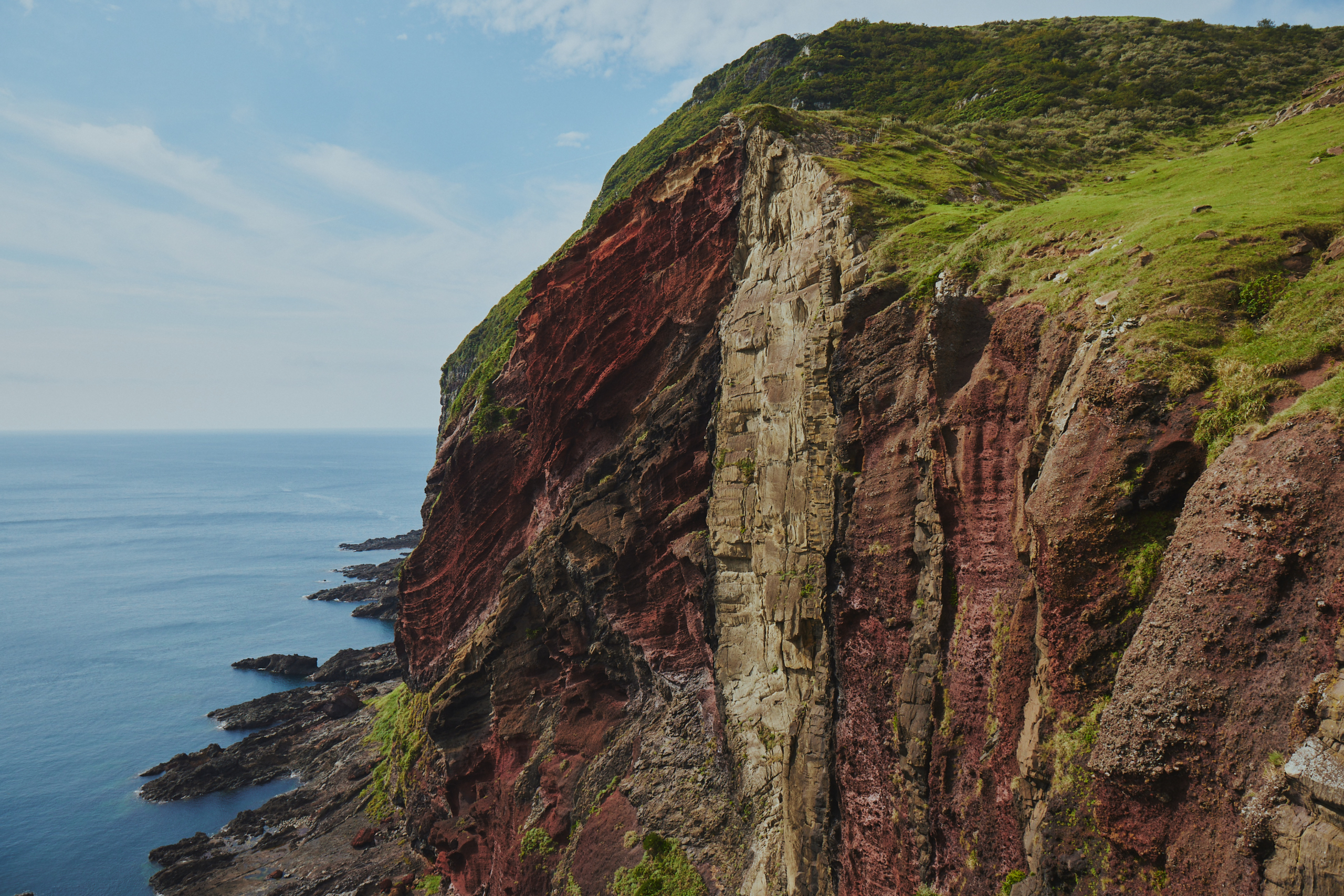 8:00旅館 ==🚢== 來居港 知夫村 === 赤ハゲ山〜(3.5km 1.5小時)〜赤壁 ===來居港 ==🚢== 別府港 西ノ島 === 午餐 === 摩天崖〜(2.5km 1.5小時)〜通天橋・國賀海岸 === 別府港 ==🚢== 菱浦港 海士町 === 飯店 16:20